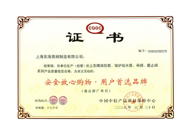 认证,2006年荣获上海市泵阀二十强企业。